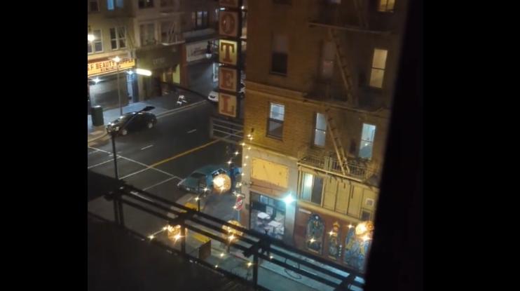 私は宿泊費がとても安かったのでこのエリアを滞在地に選んだのでした。ホテルの受付は防弾ガラス越しでした。ネットで繋がっているアメリカ人たちが言うにはサンフランシスコの中で特に危険な地域であるとの事でした。夜になると、私の部屋に面するストリートから大音量の音楽が聞こえるようになりました。そこにたむろしている人たちが騒いでいました。そして―